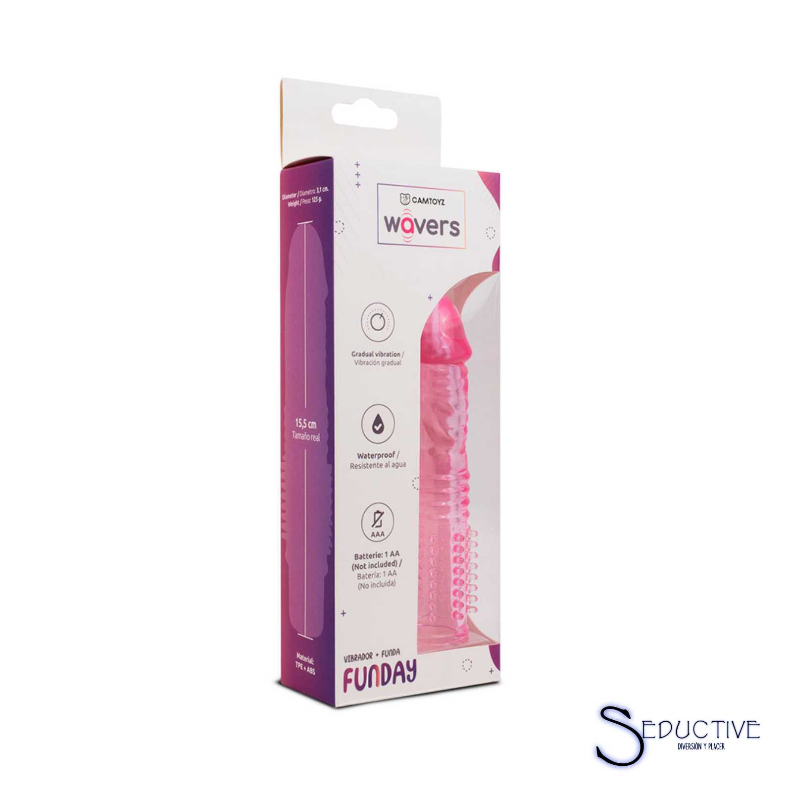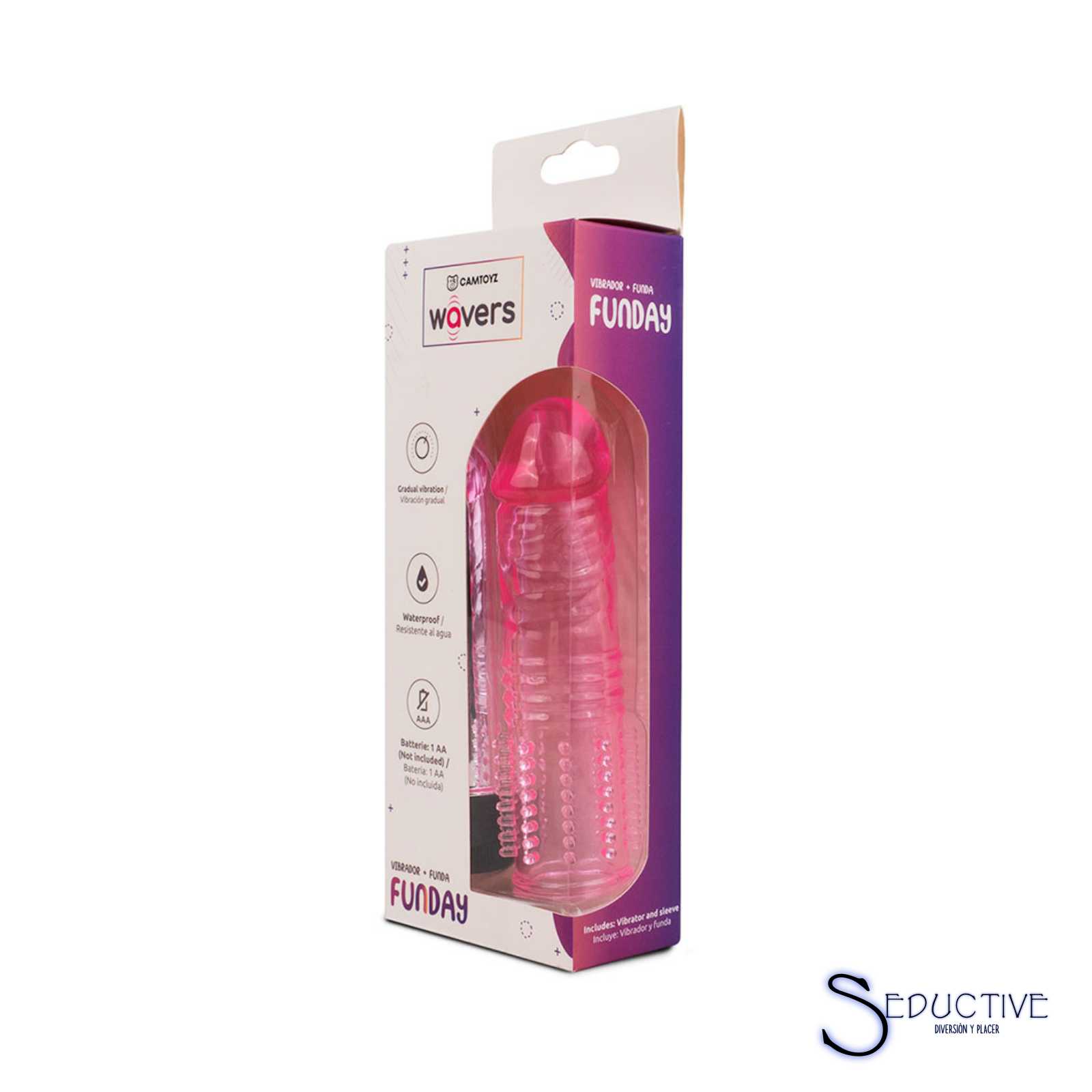 El Vibrador Funday está elaborado en silicona suave, segura para el cuerpo, y cuenta con una funda texturizada con estrías y púas de silicona que brindan mayor placer y una mejor sensación.